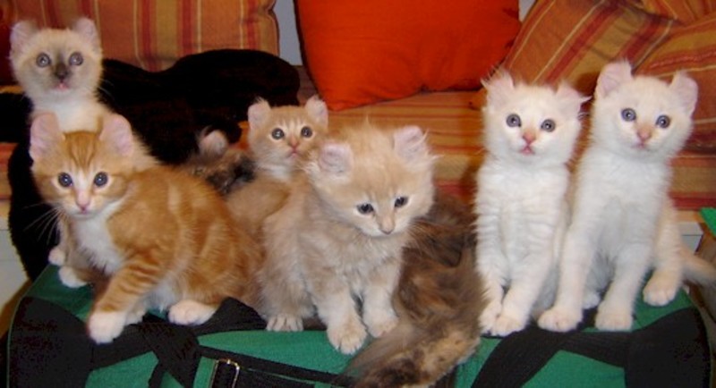 The American Curl has distinctively rear-curling ears. Only the largest cats will reach 10 pounds, with most in the 8 pound range, and females several pounds lighter.