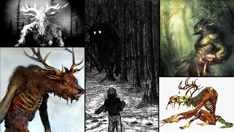 Wendigos are typically portrayed as giant werewolf type creatures with antlers, that are ravenous for human flesh, and are about three times larger than humans. The legend lends its name to the disputed modern medical term Wendigo psychosis, which In historical accounts, has been reported as humans becoming possessed by the Wendigo spirit, after being in a situation of needing food and having no other choice besides cannibalism. The Wendigo is historically associated with cannibalism, murder, insatiable greed, and the cultural taboos against such behaviours.