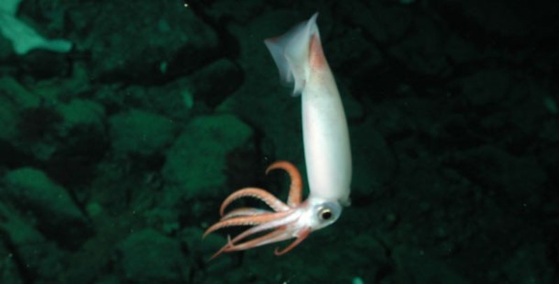 Looking a bit like a boat rudder, the bigfin squid was first seen off the Hawaiian coast in the mid-2000’s and has been scarcely photographed. Including its tentacles, it can reach lengths of up to 16 feet (5m) long.