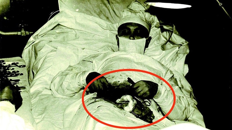 A doctor performs surgery on himself in 1972.
