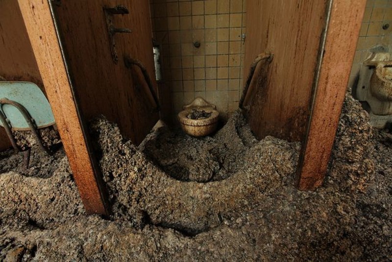 Other parts of the hospital are still in use, but this building has been overtaken by pigeons. They are still pretty bad at using the toilet though, this is a build of pigeon poo, not mud or dirt.