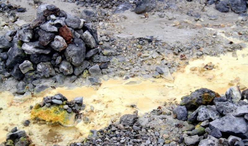 The water is full of sulphur, which gives off a horrendous eggy smell, and its killed off almost all aquatic life that lived there. There is also the chance you'll get splashed by steam and hot ash.