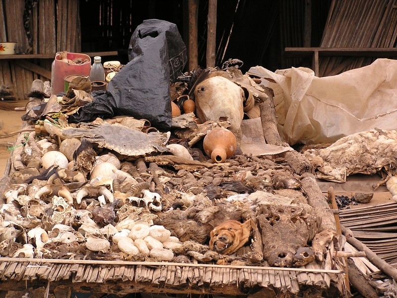 In Togo, Lome's Voodoo Market is a place where animal skills are sold by the hundreds. In African voodoo tradition, it's believed that animals remains hold magical powers that can be used to protect oneself from evil and diseases.